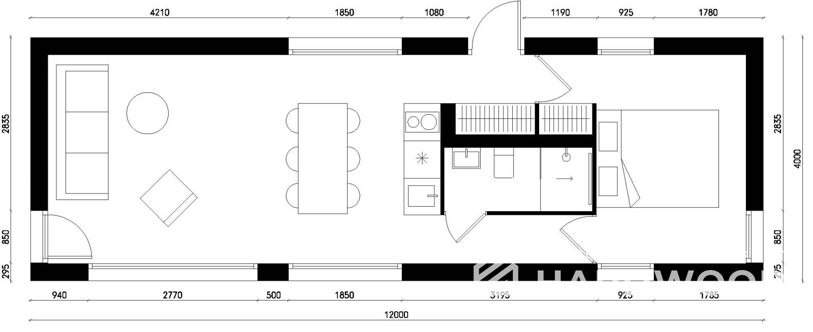 - Размеры:8х4.5м.