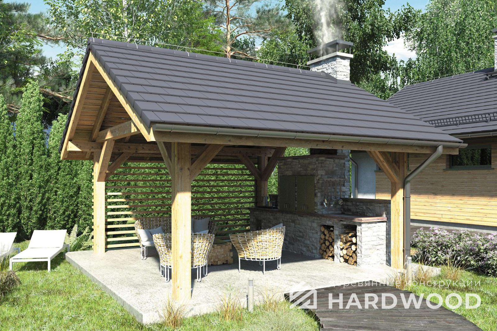 Бесплатно доставим и установим деревянный навес с гарантией прописанной в договоре