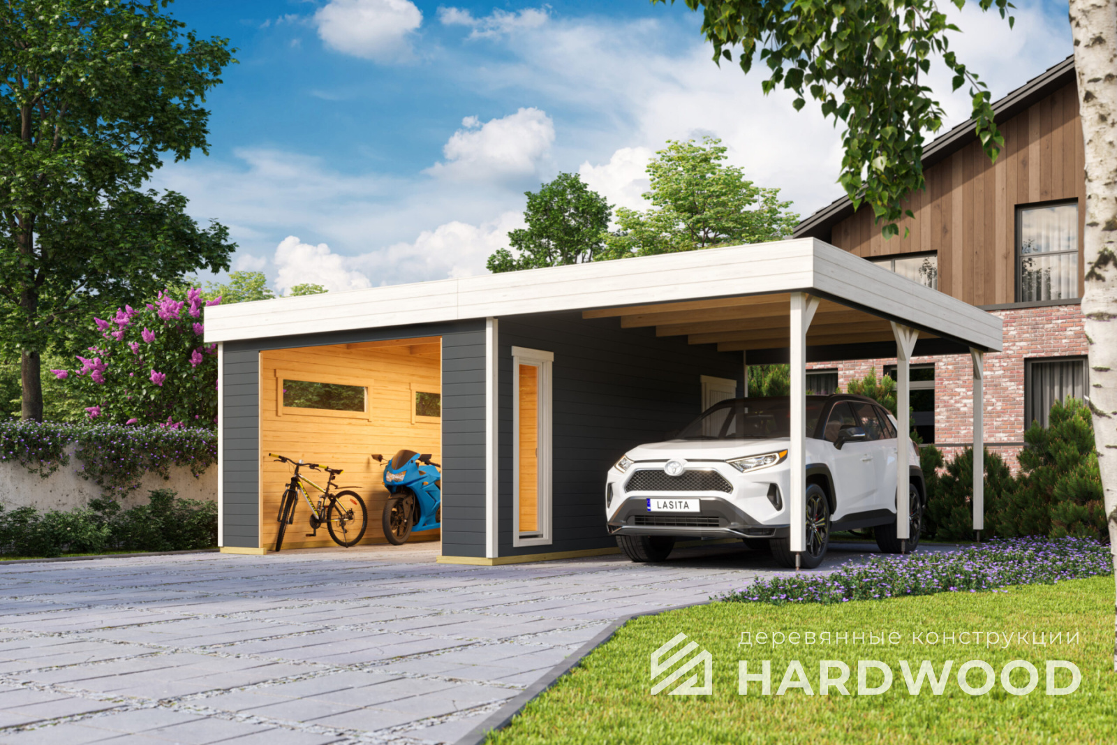 Деревянные навесы для автомобилей по акции