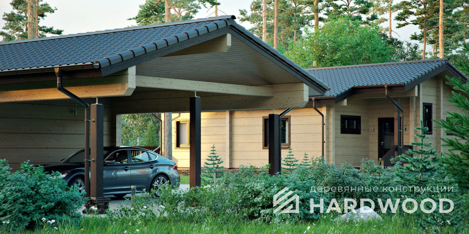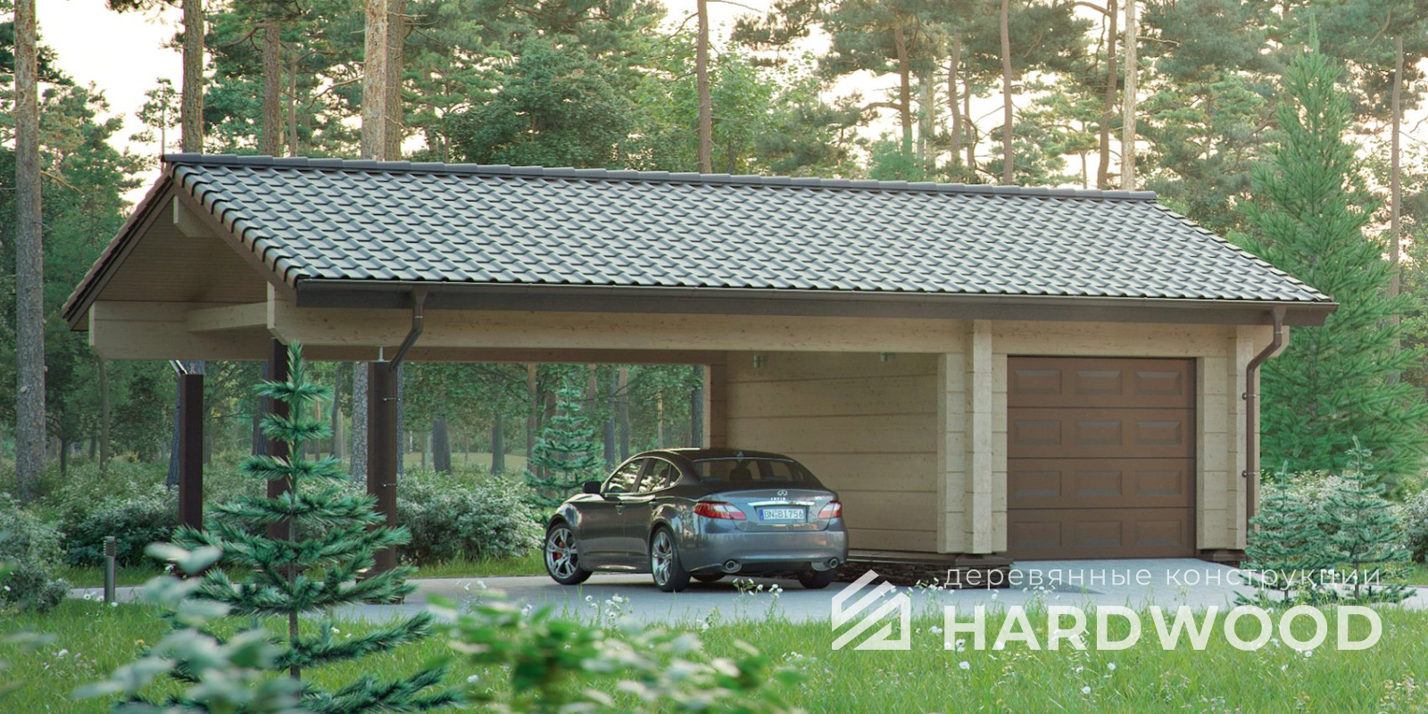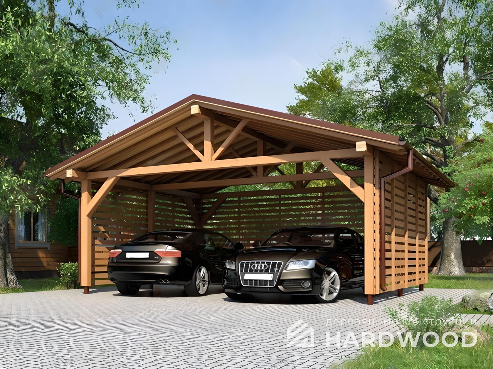 | Название модели: | Навес из бруса для автомобилей с хозблоком №138 |